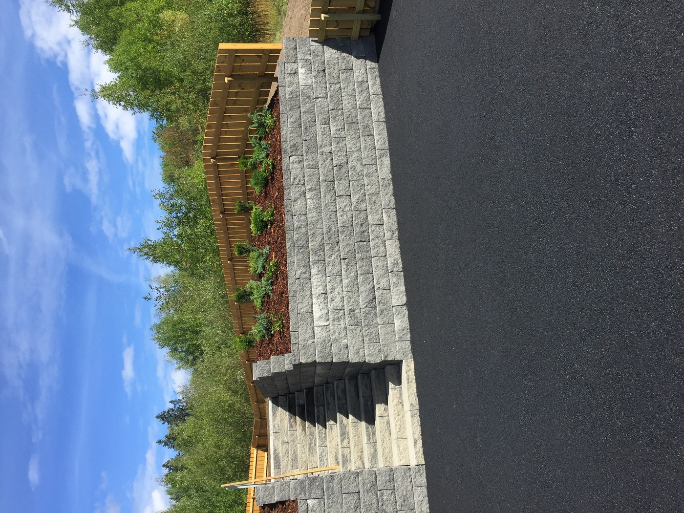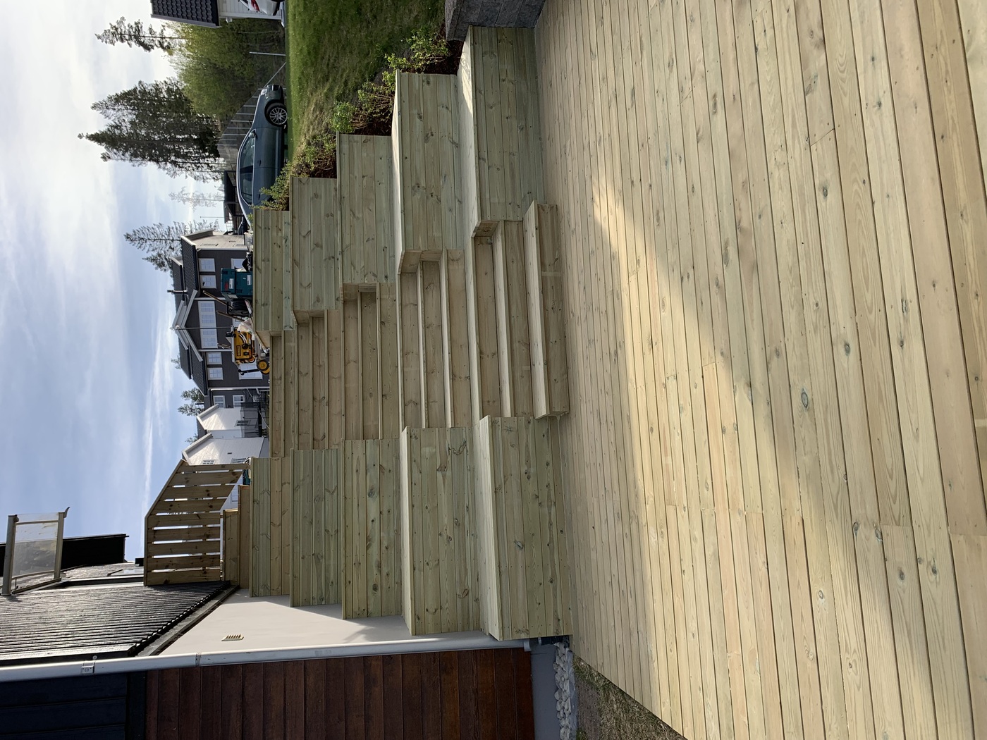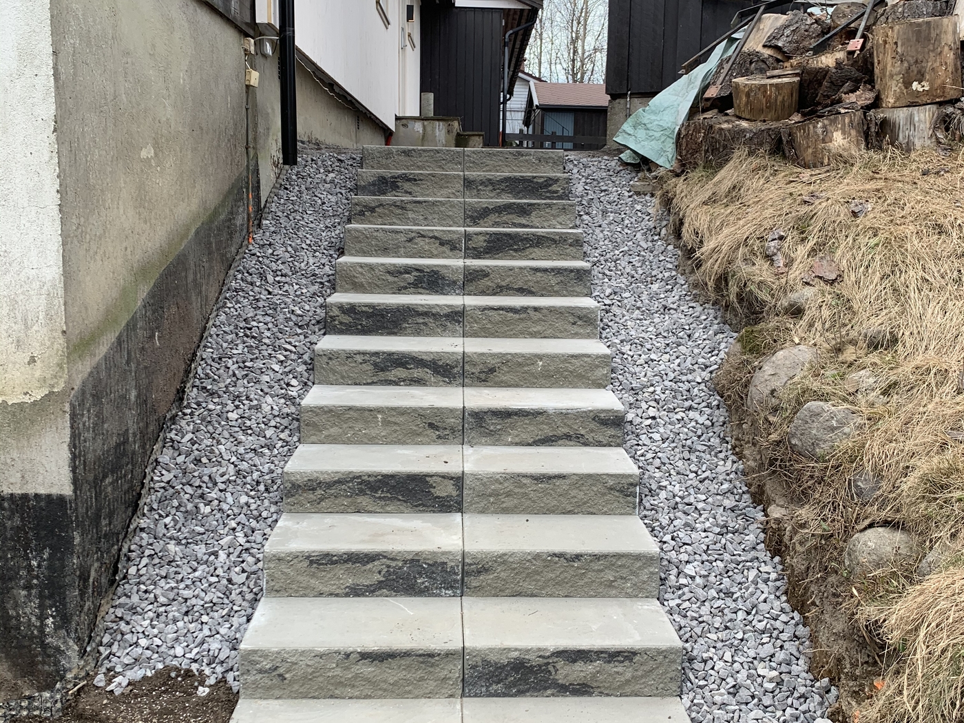 Trapper Trapp og benker samt uteplass av imp Stein trapp av kantstein med belegg som inntrinn Trapp mur asfalt kantstein Naturstein trapp og skifer plass Impregnert tretrapp med gelender ASAK ELEMENT TRAPP MED HÅNDLIST Benk å plattinger samt trapper i imp Asak Vertica mur med bed og trapp og imp gjerde Asak element trapp i betong