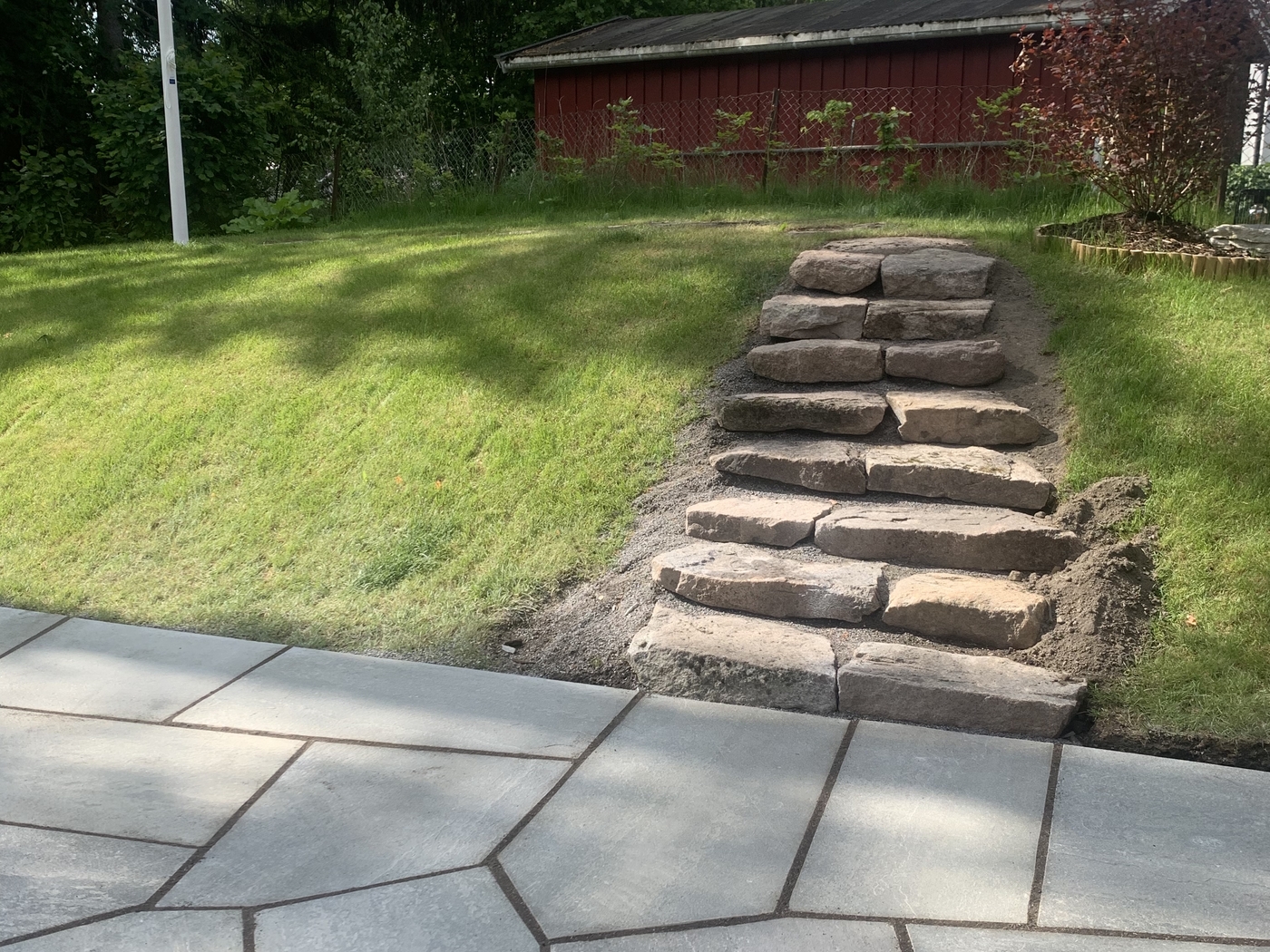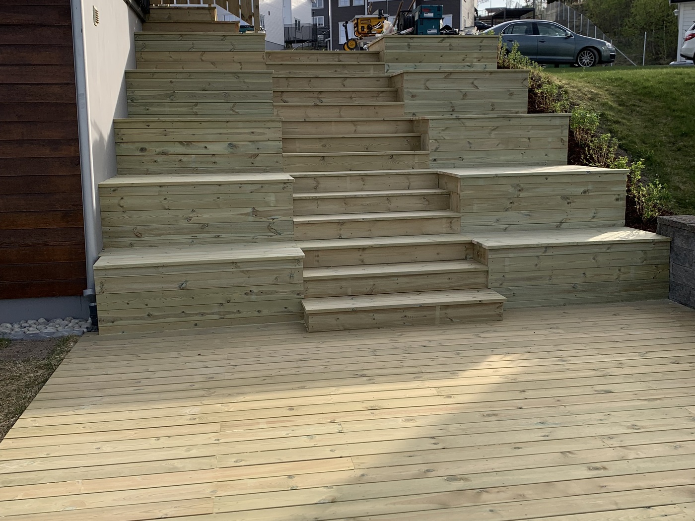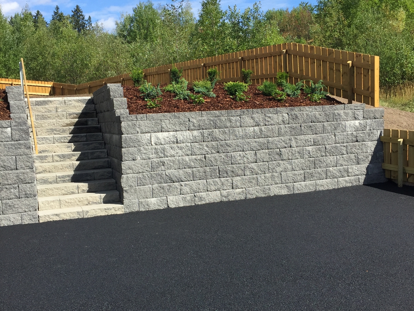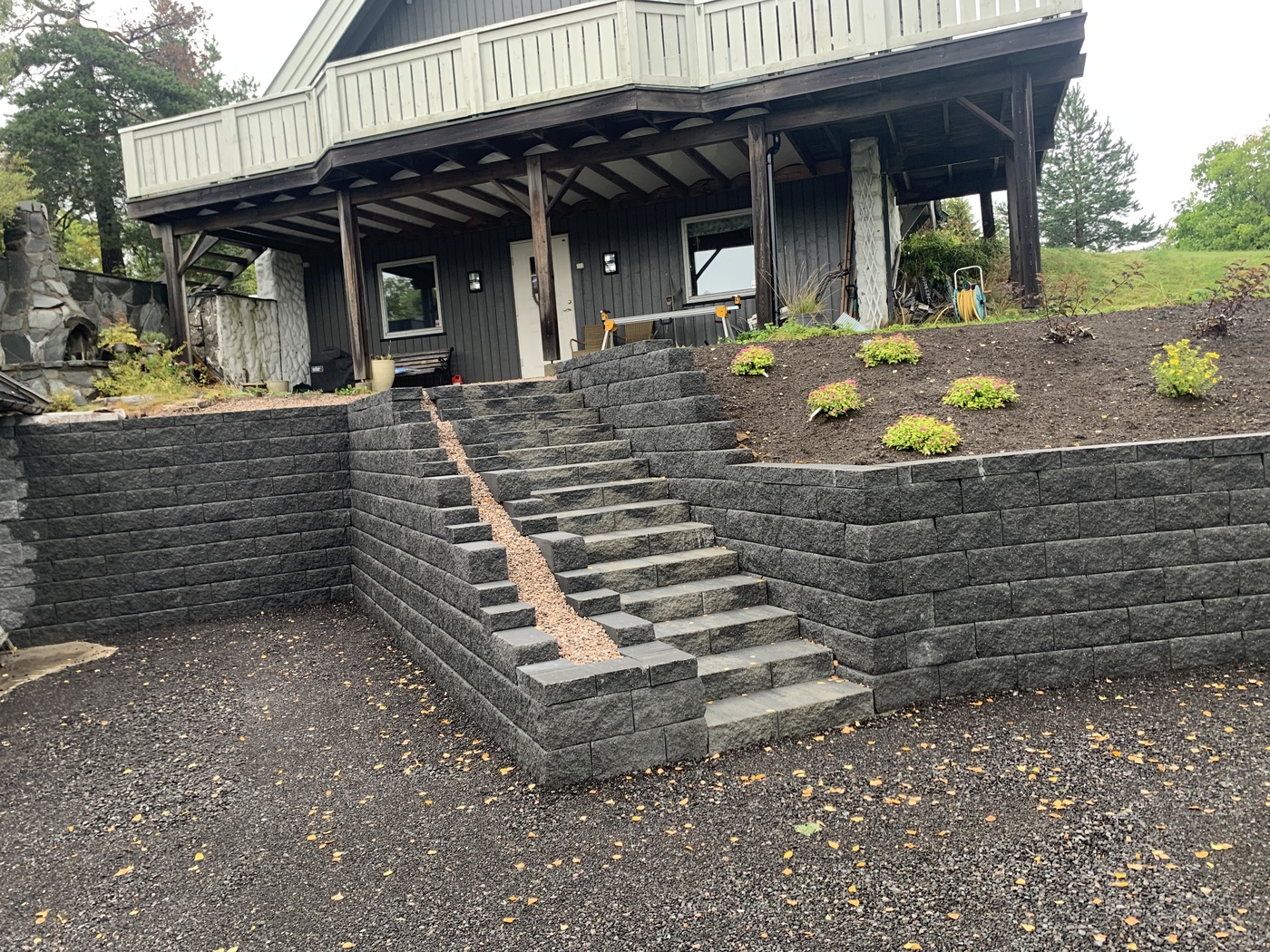 Trapper Trapp og benker samt uteplass av imp Stein trapp av kantstein med belegg som inntrinn Trapp mur asfalt kantstein Naturstein trapp og skifer plass Impregnert tretrapp med gelender ASAK ELEMENT TRAPP MED HÅNDLIST Benk å plattinger samt trapper i imp Asak Vertica mur med bed og trapp og imp gjerde Asak element trapp i betong