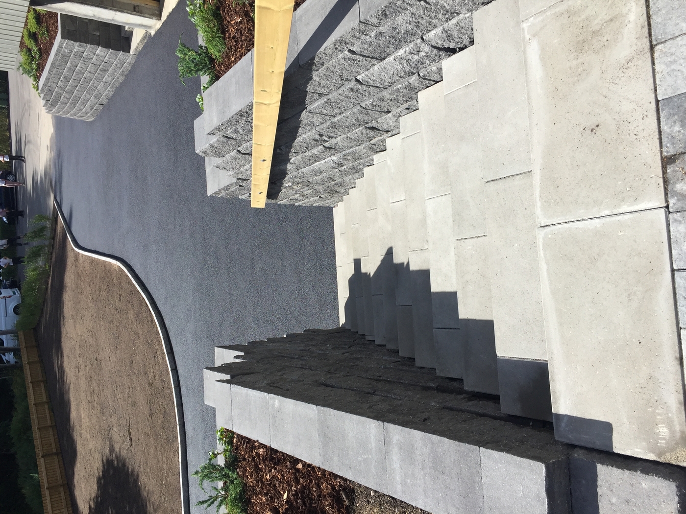 Trapper Trapp og benker samt uteplass av imp Stein trapp av kantstein med belegg som inntrinn Trapp mur asfalt kantstein Naturstein trapp og skifer plass Impregnert tretrapp med gelender ASAK ELEMENT TRAPP MED HÅNDLIST Benk å plattinger samt trapper i imp Asak Vertica mur med bed og trapp og imp gjerde Asak element trapp i betong